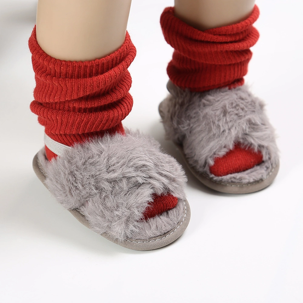 Wholesale Cozy Baby Girl Fur Slipper Sandals, Toddler Wakling Shoes, Kids Shoes